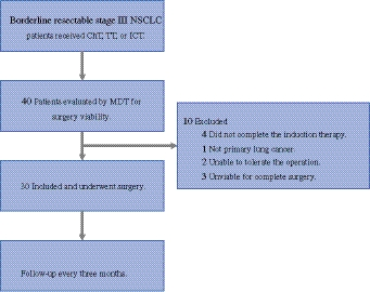 The rates of morbidity were 13.0–40.0% in three prospective trials of neoadjuvant therapy for potentially resectable stage IIIA to IIIB NSCLC, and 13.0–16.1% in two retrospective trials of induction therapy for initially unresectable stage IIIB NSCLC.7,8,10,11,19 Further, 3 out of 24 patients (12.5%) who underwent surgery after induction therapy encountered surgical-related complications in a latest published exploratory study for unresectable stage II–III NSCLC.9 Our study demonstrated a postoperative morbidity rate of 33.3% and 30–90-day mortality rate of 3.3%, which were similar to abovementioned data, thus acceptable.